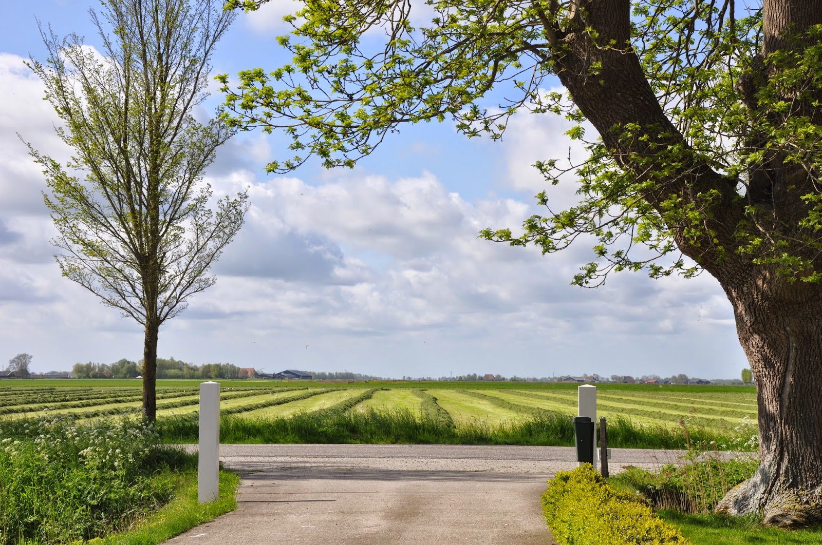 Wat een mooi uitzicht vanmorgen. Op de weilanden ligt de eerste snee klaar om naar binnen te halen. Onze buurman is er druk mee.